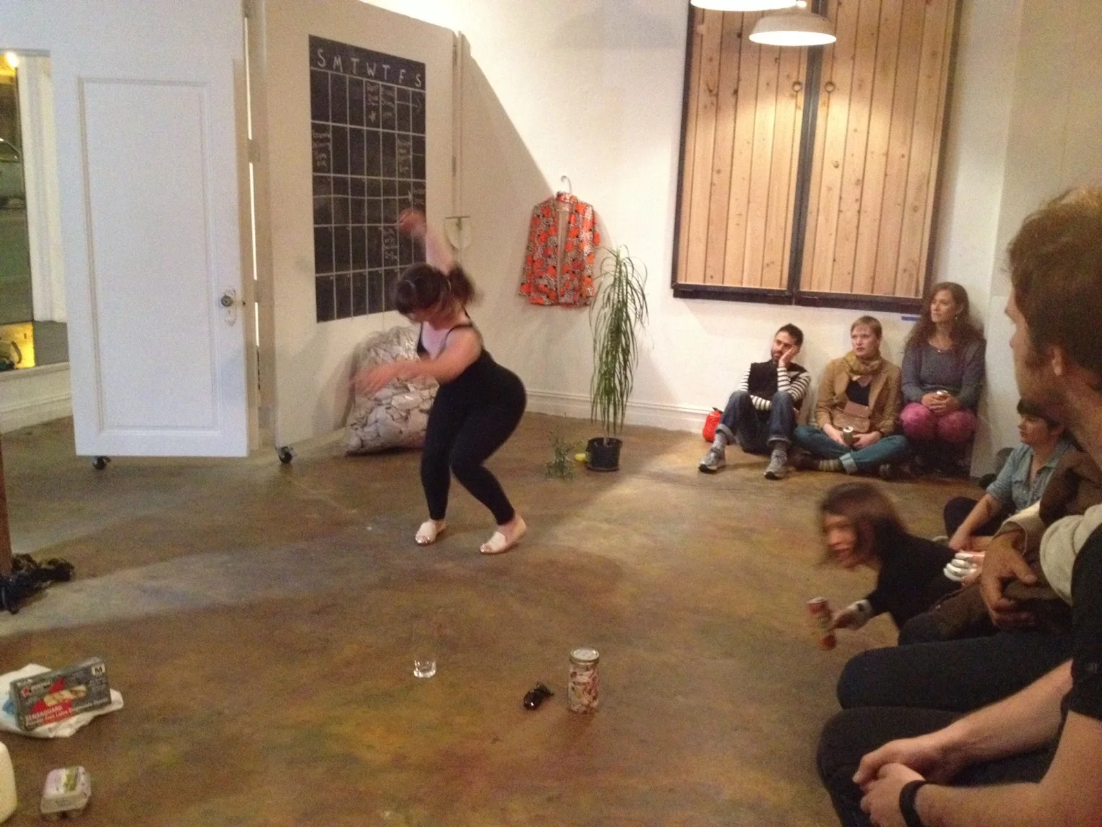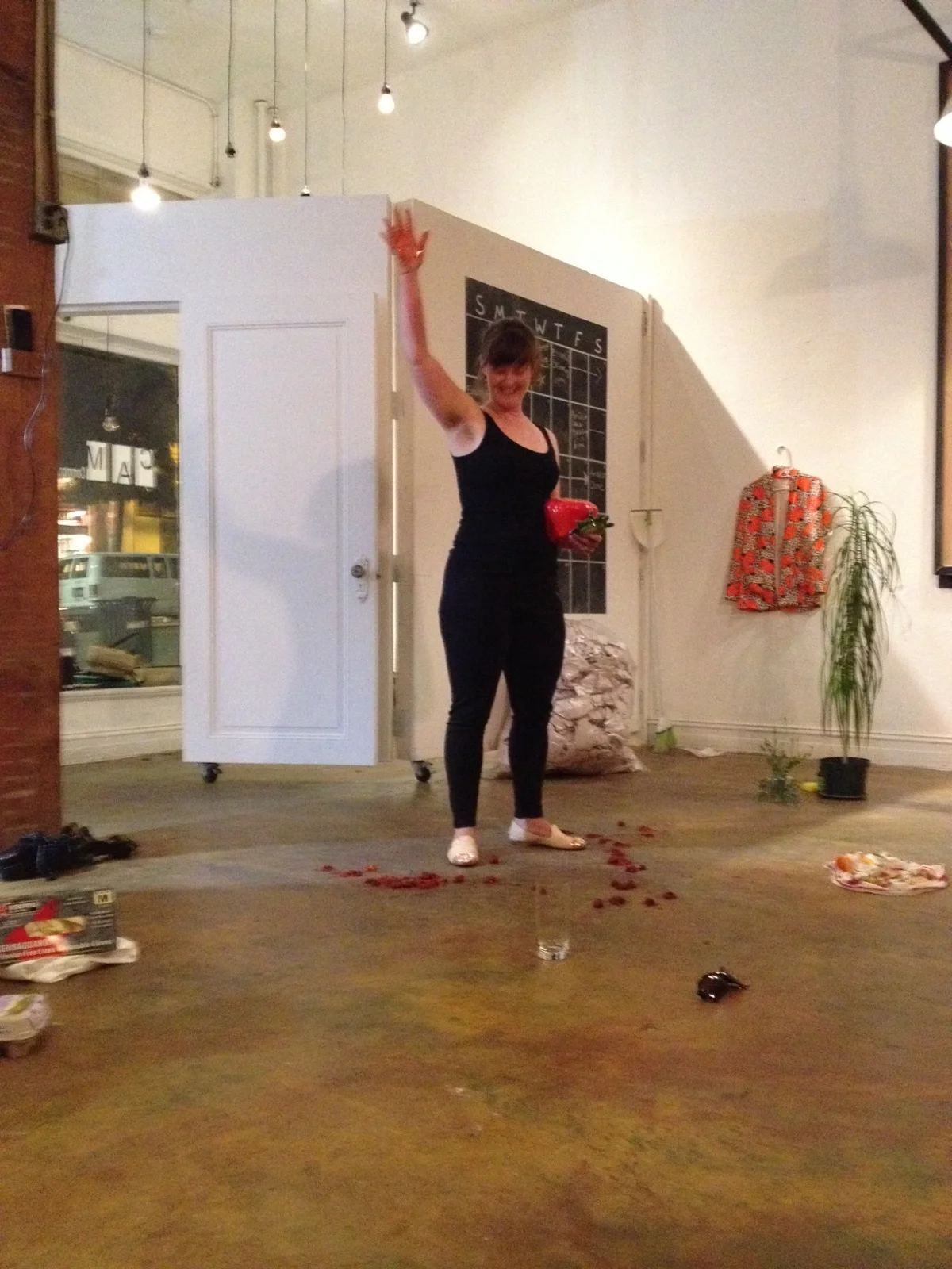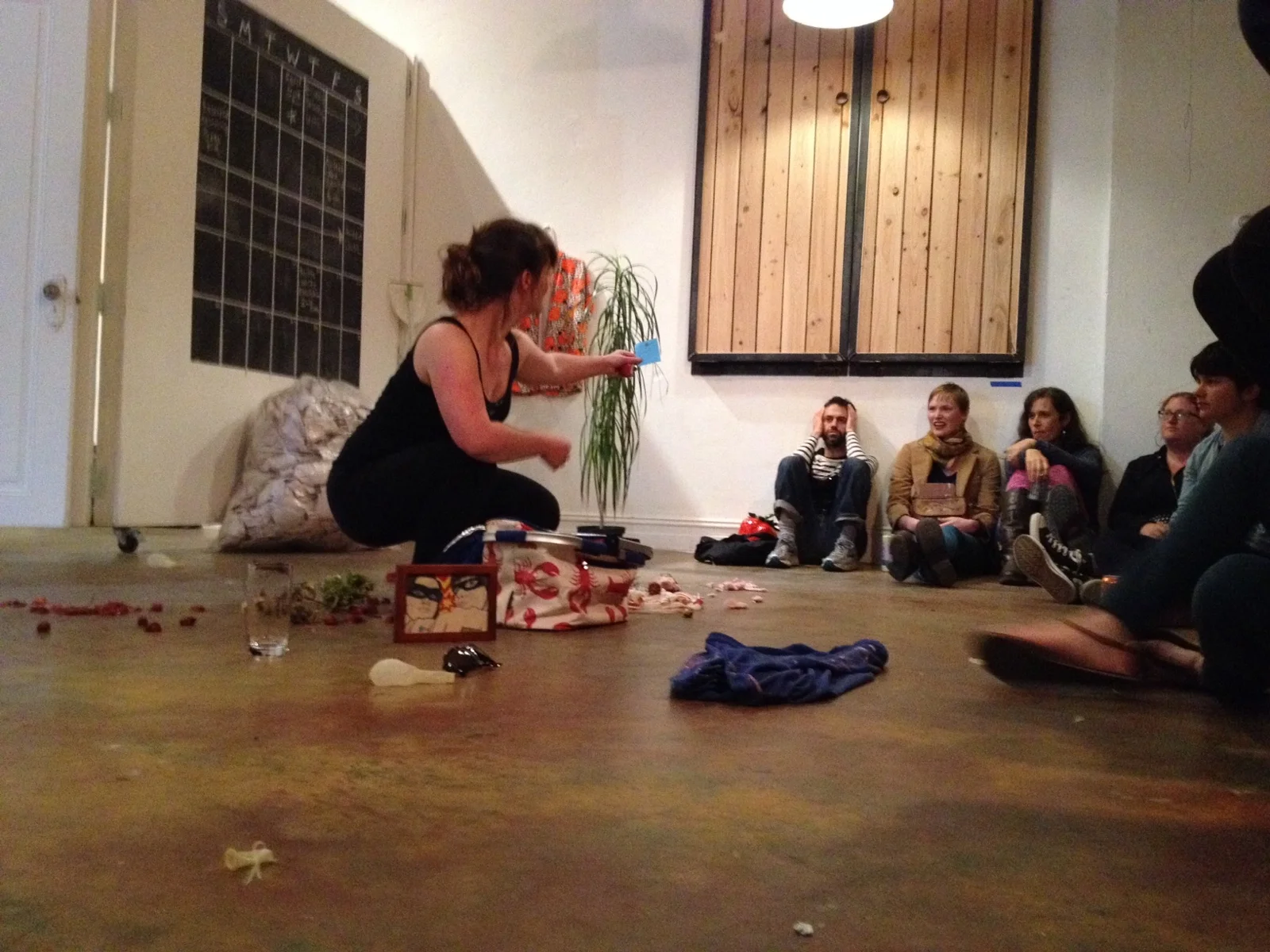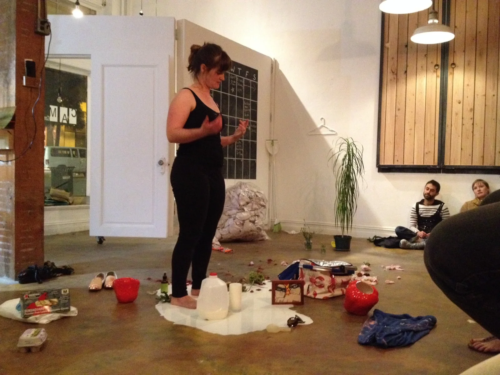 2016: Common Area Maintenance, Seattle, WA “Shit, Strawberries and Cream” is a humorous performative poem, exploring chapters of the artist’s daily life. The content ranges from stories about bed bugs while working with folks in low income housing, reactions to being cat-called by strangers, revelations while pooping, white identity, gentrification, privilege, luxury.. along with loss, tenderness, abundance and community.
